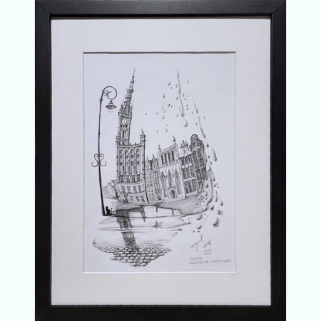 Unikalny rysunek Mai Wolf "Gdańsk. Deszczowe wspomnienie" dla prawdziwych wielbicieli sztuki.