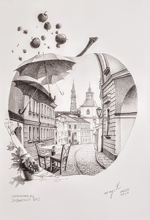 Unikalny rysunek Mai Wolf "Jabłkowy sad. Sandomierz" dla prawdziwych wielbicieli sztuki.