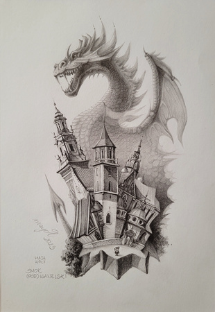 Unikalny rysunek Mai Wolf "Kraków. Smok (pod)wawelski" dla prawdziwych wielbicieli sztuki.