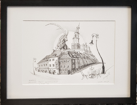 Magiczna inkografia na papierze Mai Wolf z serii "Poznań", przedstawiająca najpiękniejsze zakątki miasta.