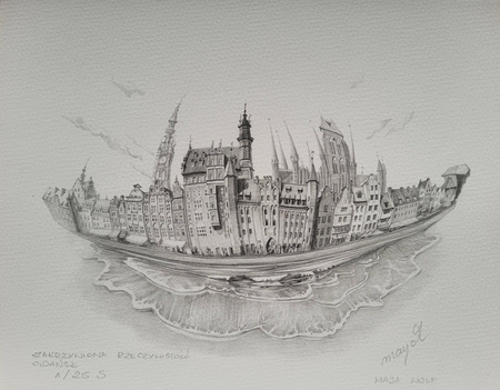 Zachwycająca inkografia na papierze Mai Wolf z serii "Gdańsk", przedstawiająca najpiękniejsze zakątki miasta.
